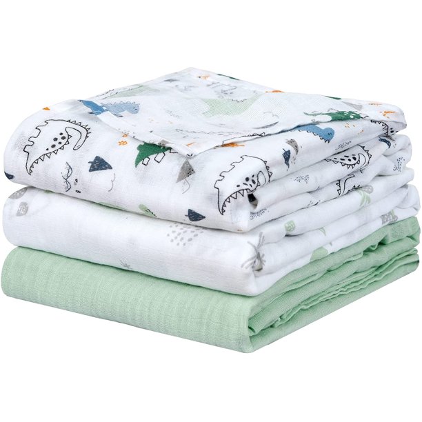 100 Cotton Muslin Swaddle Blankets Super Soft Breathable Comfortable Baby Blankets Swaddle Wrap Set Large 47 X 47 Inches Receiving Blanket For Infant Baby Boys 3 Pack Dinosaur Woodland Green Walmart Com